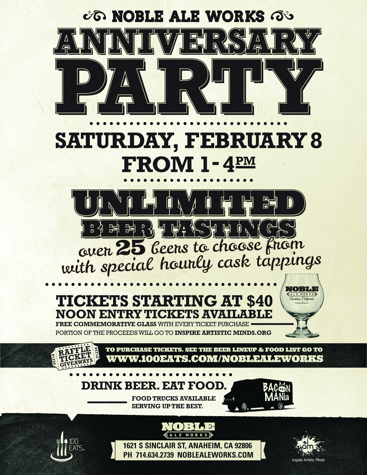 Also, all attendees have a chance to win some cool giveaways…Anaheim Ducks Tickets, Tres Noir Custom Sunglasses, local restaurant gift cards along with some cool Noble Ale items.